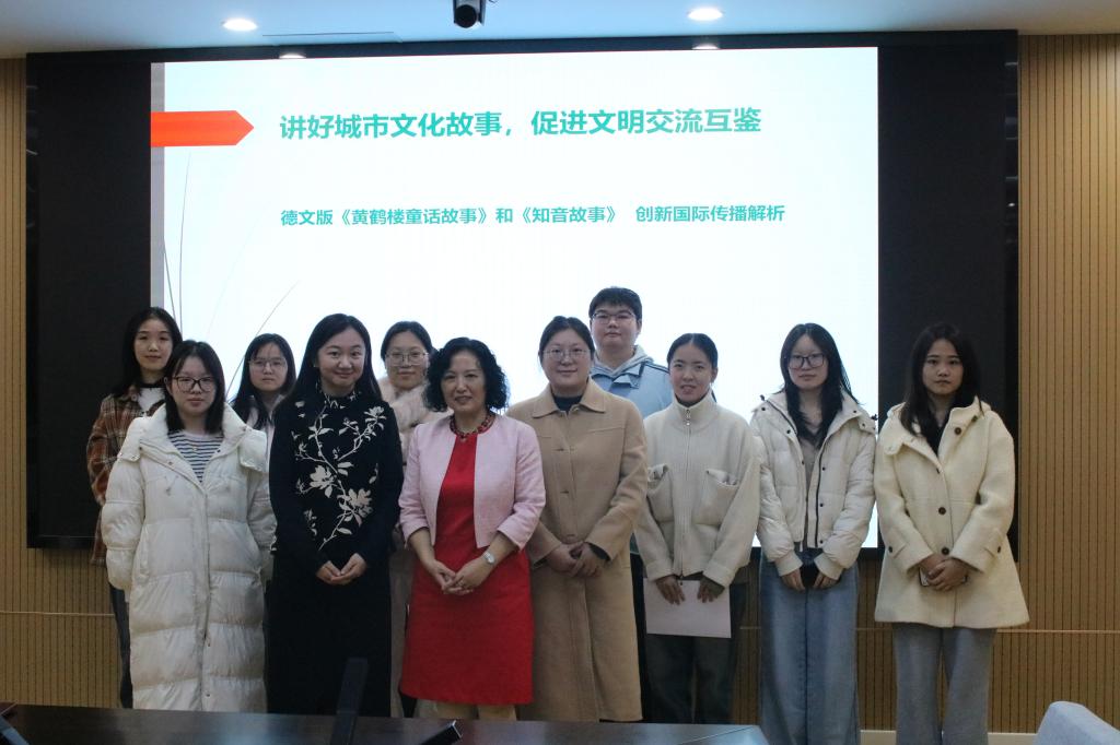 11月17日下午,德国明斯特大学中国研究中心主任周俊教授莅临我院,以“讲好城市文化故事 ,促进文明交流互鉴——德文版《黄鹤楼童话故事》和《知音故事》 创新国际传播解析”为题开展专题讲座。讲座由学院副院长黎明主持,部分师生参加,共同探讨中国故事的国际化表达与城市文化的跨文化传播之道。