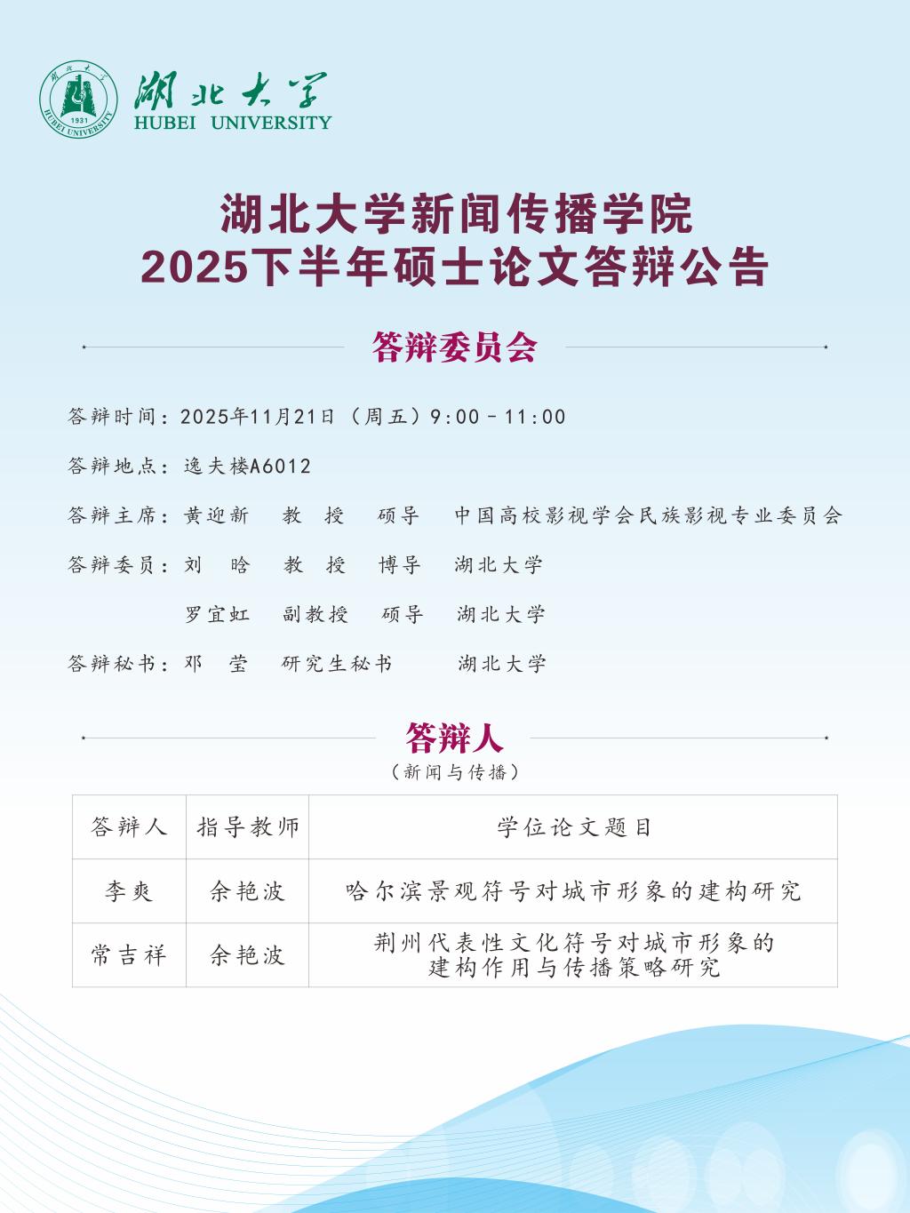 必赢bwin网页版2025下半年硕士论文答辩公告